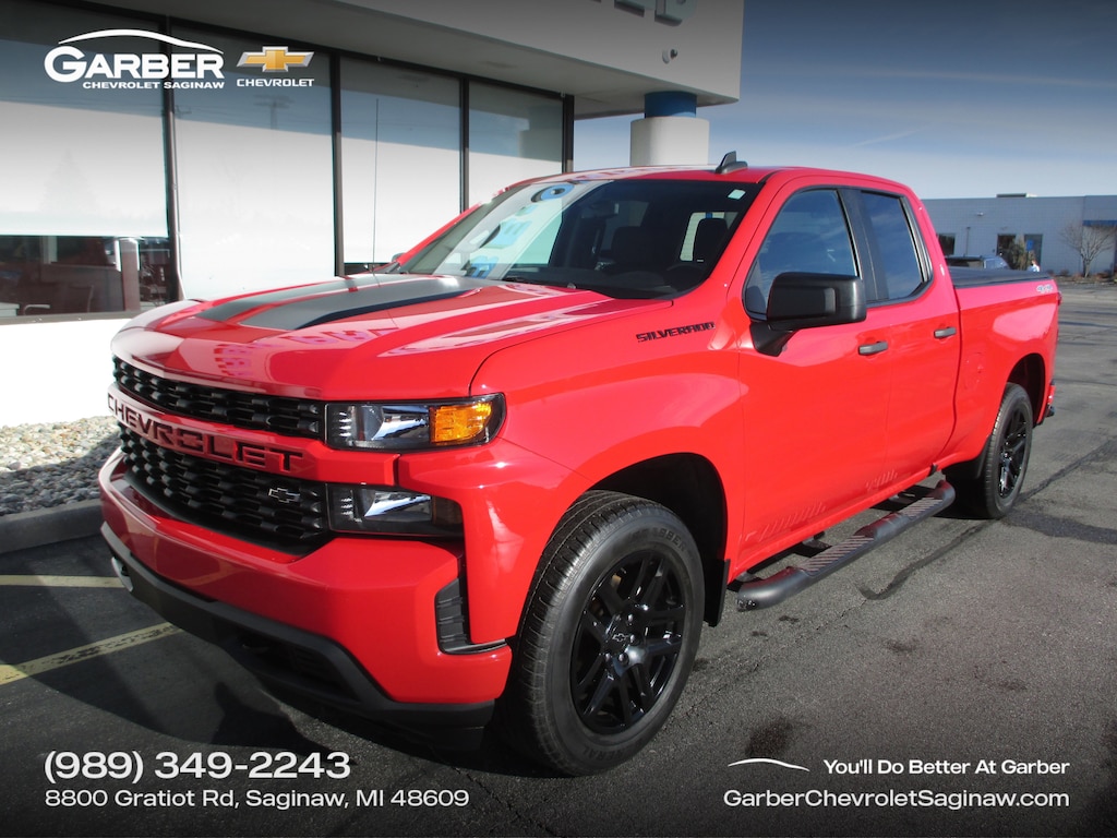 Don't hesitate...Call TODAY to set your appointment and see why NATIONWIDE people CHOOSE GARBER GRATIOT for their pre-owned purchase. 8-Speed Automatic, 4WD, Black Cloth. Clean CARFAX.2020 Chevrolet Silverado 1500 Custom Red HotOdometer is 26903 miles below market average!Call us today at ...989-781-4590 OR VISIT US AT GARBERCHEVROLETSAGINAW.COM.....